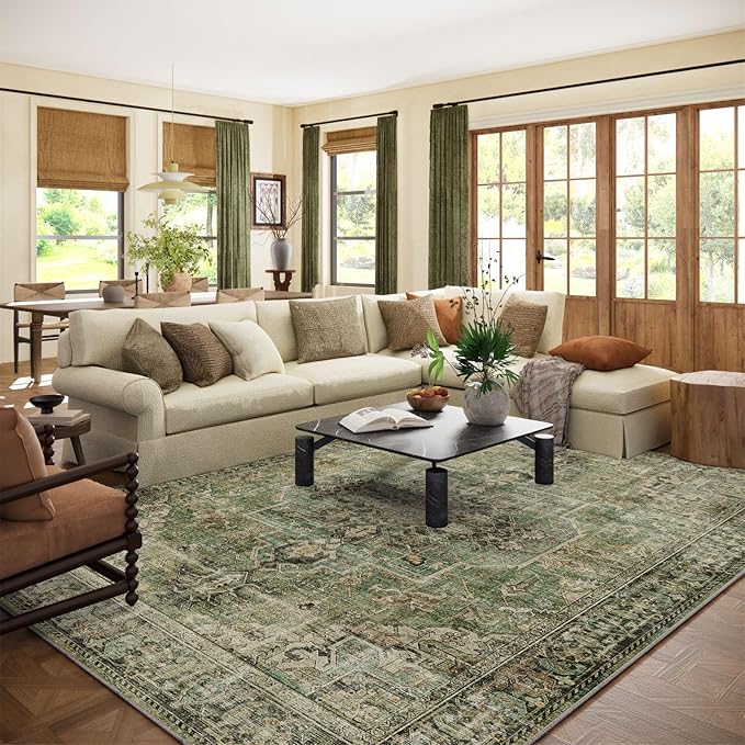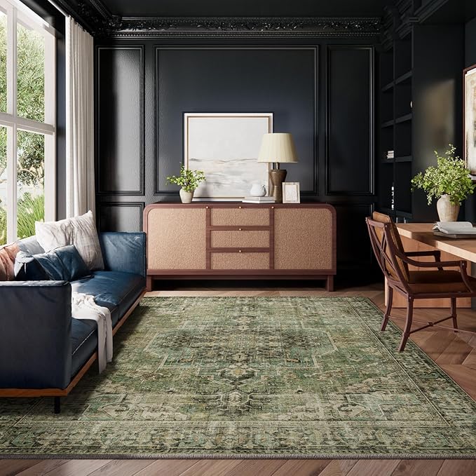10x14 Area Rugs for Living Room: Washable Bedroom Rug Boho Vintage Rugs Stain Resistant Non Slip Low Pile Soft Lightweight Carpet for Kitchen Dining Room Farmhouse Nursery Kids Room